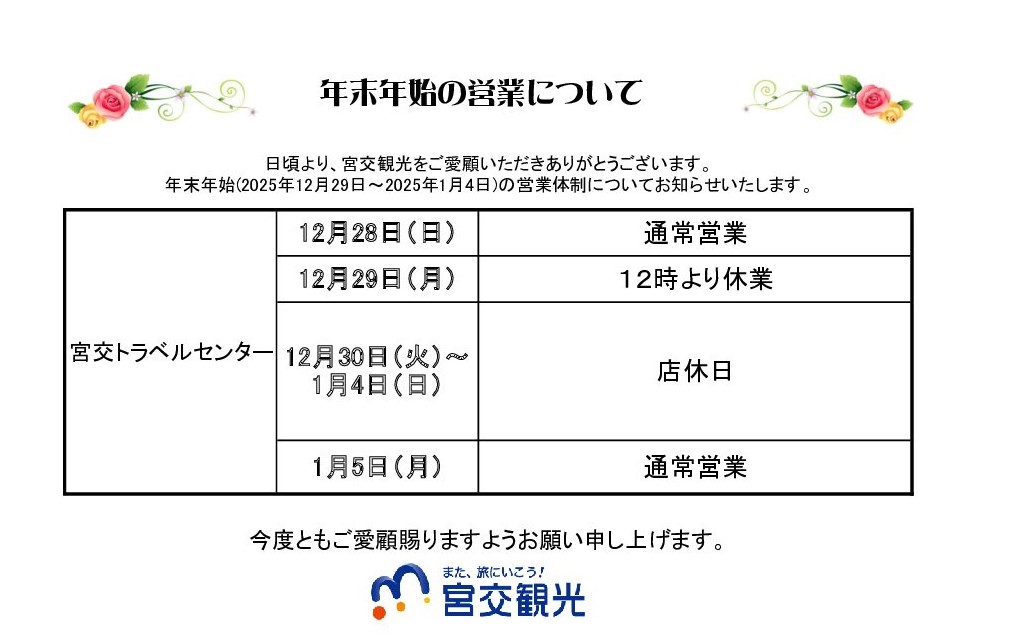 宮崎県の旅行会社の宮交トラベルセンターです! 旅行の情報を発信します☺️