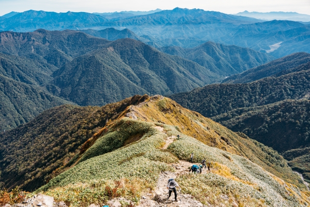 | ★★★ | 中級 | 4~7時間・800m~1500m | 急傾斜の登りや一部に岩場、鎖、梯子がある |
