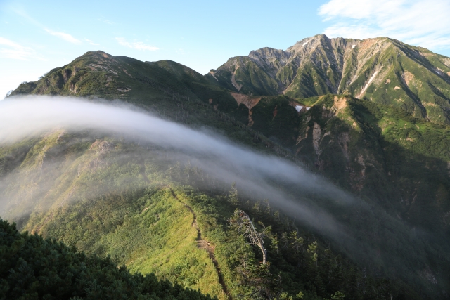 | 服装 | 夏場でも山では冷え込むことがあります。必ず防寒具を用意してください。また、着脱して温度調節ができるように重ね着できるものがオススメです。また、上着・下着とも吸湿性・通気性・速乾性に富んだ素材が最適です。綿製は乾きにくく体温を奪う為適しません。 |