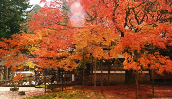 国の名勝「九年庵」は、紅葉の名所として知られる庭園。